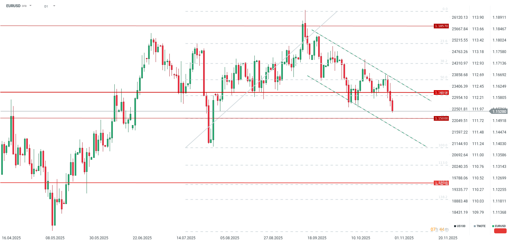 EURUSD dnes klesá pod úroveň 1,1530 a proráží support z poloviny měsíce. Ještě před třemi seancemi se pár pohyboval blíže k úrovni 1,17, ale nyní se zdá, že hladina 1,1500 je na dosah.