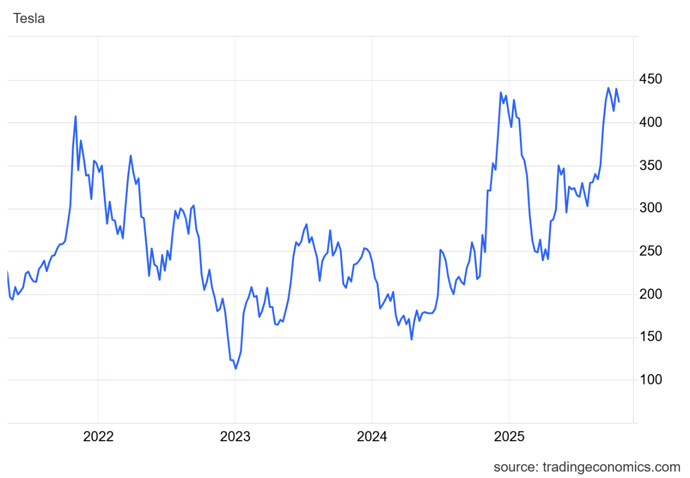 Na druhou stranu, co se týče dodávek, Tesla si udržela relativně silné tempo. Za třetí čtvrtletí bylo hlášeno 497 099 dodaných vozidel, což zároveň představuje nový rekord. Přesto však celkové dodávky od začátku roku dosahují 1,2 milionu kusů, což je o 6 procent méně než v roce 2024. To investory v konečném důsledku zaskočilo, protože ve Spojených státech došlo ke konci daňových úlev pro elektromobily, které inicioval prezident Donald Trump, a tak se očekávala naopak zvýšená aktivita nákupů ze strany spotřebitelů.
