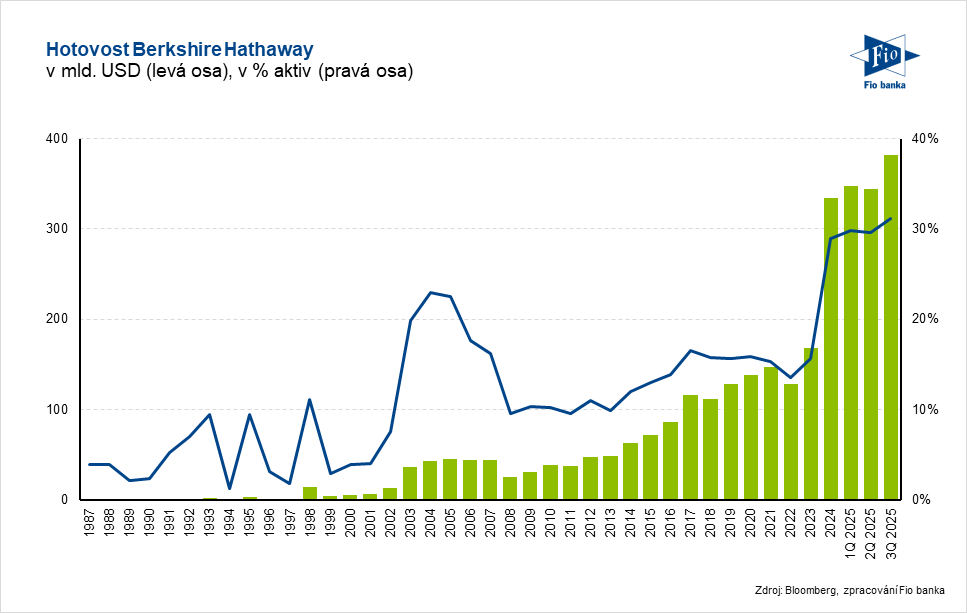 Americký konglomerát Berkshire Hathaway v sobotu reportoval výsledky za 3Q. Čistý zisk z vlastního hospodaření meziročně vzrostl o 34 % na 13,49 mld. USD. Objem držených peněžních prostředků a hotovostních ekvivalentů vzrostl na rekordních 381,7 mld. USD.