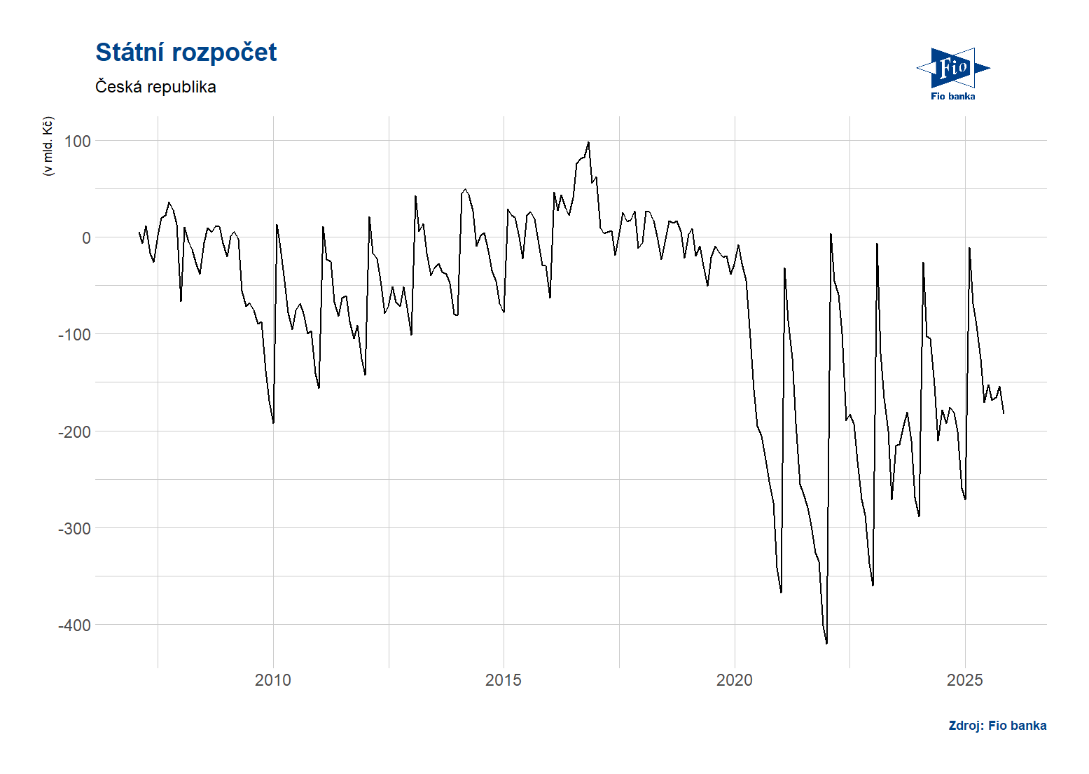 Bilance státního rozpočtu (leden): aktuální hodnota: -11,2 mld. Kč. -