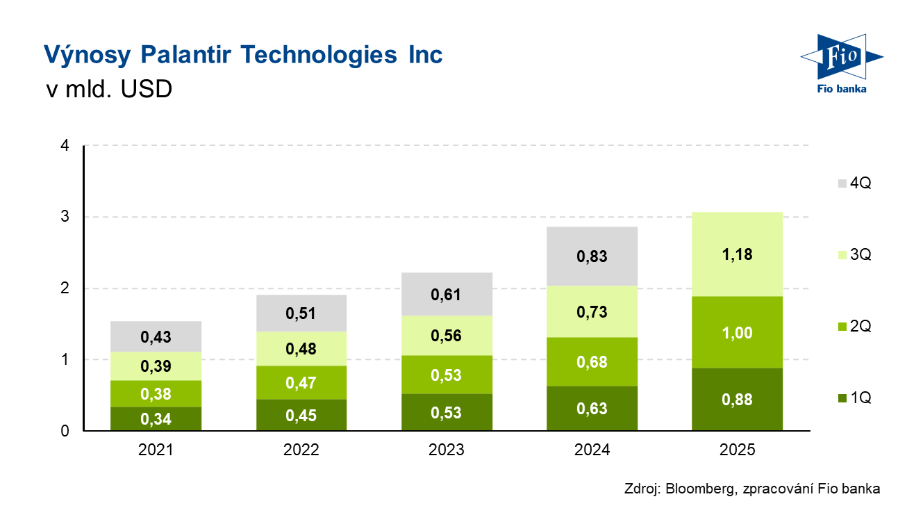 Americká softwarová společnost Palantir Technologies, která se specializuje na analýzu velkých dat, zveřejnila výsledky hospodaření za třetí kvartál roku 2025. Výsledky překonaly očekávání a společnost navýšila svůj celoroční výhled. Analytici hodnotí výsledky pozitivně, avšak vyjádřili své obavy ohledně valuace společnosti.