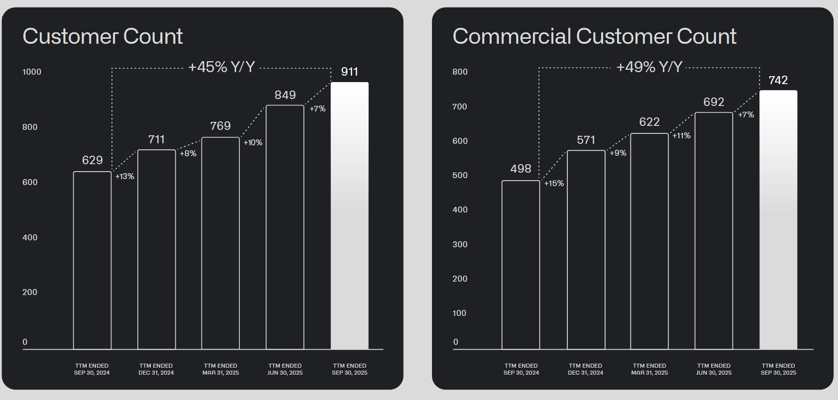 Počet zákazníků meziročně vzrostl o 45 % a mezikvartálně o 7 % na 911.