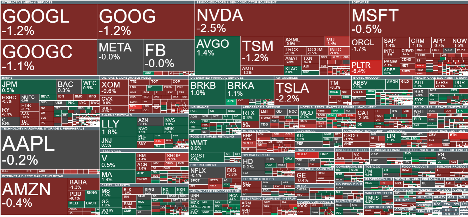 Celkově se dnešní seance na amerických akciových trzích odehrává pod tlakem na pokles. Futures na Nasdaq 100 a S&P 500 aktuálně oslabují přibližně o 0,9 % a 0,5 %. Negativní náladu částečně vyvolávají varování investičních bank před možnou korekcí trhu a slábnoucí sentiment v technologickém sektoru. Investoři zůstávají opatrní a vyčkávají na další makroekonomická data a výsledky firem v náročném tržním prostředí.