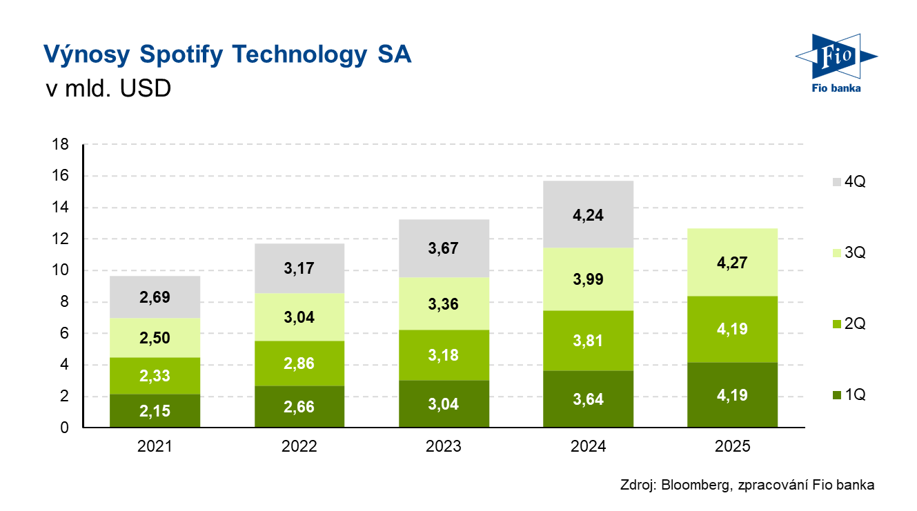Klíčová slova: Akcie | Bloomberg | CEO | Dividendový výnos | Marže | P/E | Spot | Ukazatel | Výnos | Wall Street | Zisk na akcii | EUR | USD | Business | Zisk | Výsledky | EPS | Banka | Fio banka | Cena | Fio | Cílová cena | Hrubá marže | Marže společností | Kapitalizace | Výhled | Konsensus | Výnosy | Očekávání | EK | Kapitálové výdaje | Očekávání trhu | Čistý zisk | Hospodaření | Inovace | Výsledky hospodaření | Provozní zisk | Meziroční růst | Výdaje | Vývoj | Růst | Průměrný výnos | Růst výnosů | Spotify | Akcie Spotify | Streamovací společnost | SPOT | Společnosti | Společnost | Výsledky společnosti | 3М | CEO společnosti | Zakladatel | Zakladatel a CEO | Technology | Spotify Technology | Spotify Technology SA | Peněžní toky | Fio banka, a.s. | Společnost Spotify | Výhled na další kvartál |
