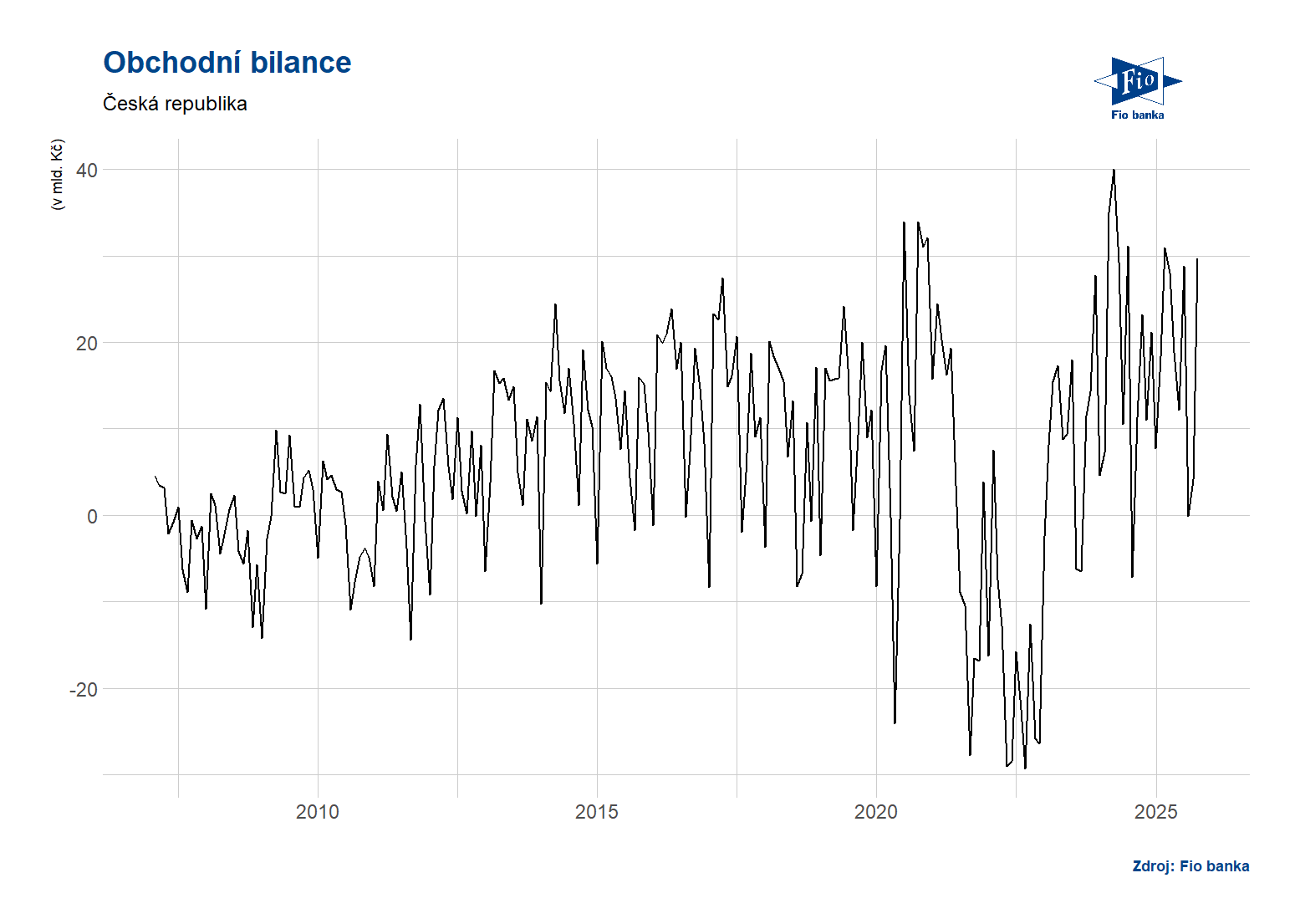 Obchodní bilance v národním pojetí (červen): aktuální hodnota: 26,3 mld. Kč. -