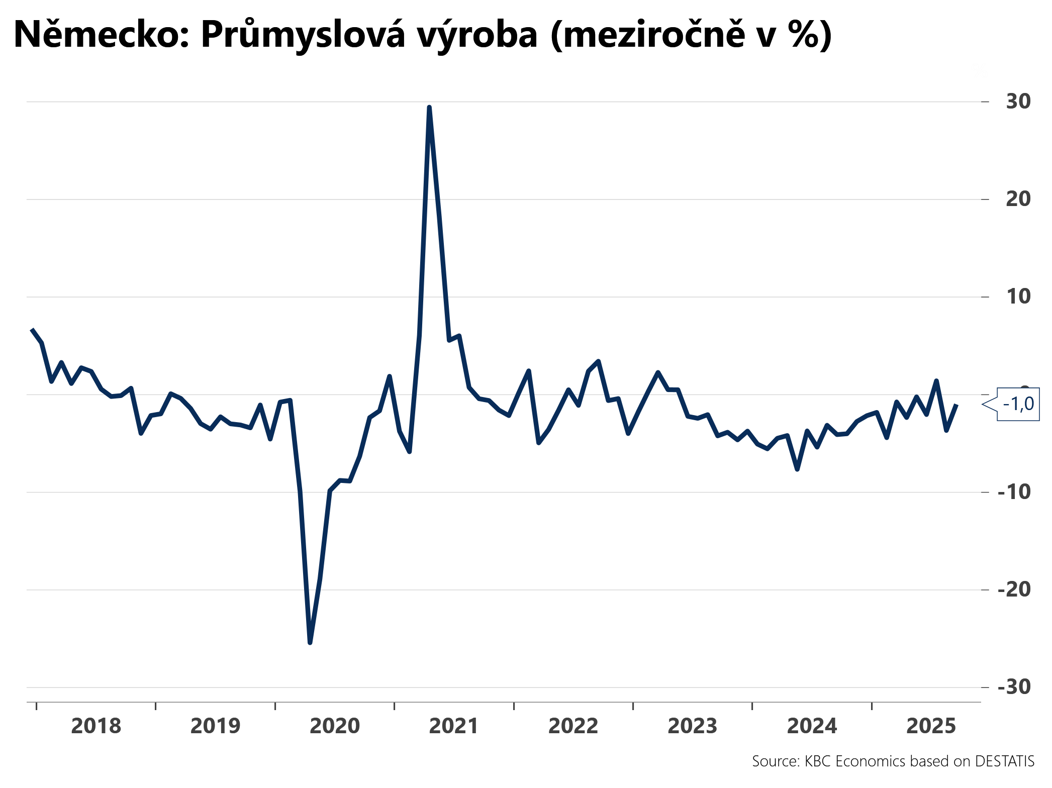Průmyslová výroba v prosinci meziročně zpomalila o 8,7 % oproti revidovaným -5,3 % v listopadu. Trhy očekávaly zpomalení o 7,8 % meziročně. -