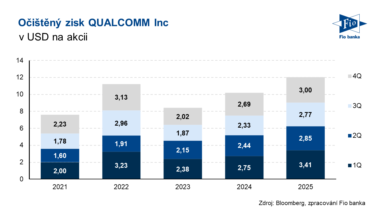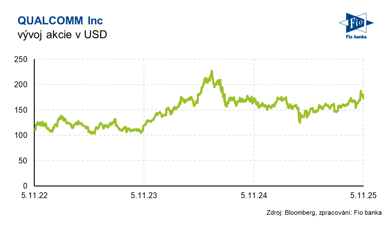Klíčová slova: Analytik | Akcie | Bloomberg | Dividendový výnos | P/E | Ukazatel | Výnos | Zisk na akcii | Analytici | USD | Obchodování | Zisk | Výsledky | EPS | Analytika | Banka | Fio banka | Cena | Fio | Trh | Cílová cena | Tržby | Kapitalizace | Výhled | Konsensus | Očekávání | Akcie společnosti | Kapitálové výdaje | Čistý zisk | IOT | Ztráta | Hospodaření | Výsledky hospodaření | Pokles | Provozní zisk | Meziroční růst | Výdaje | Vývoj | Růst | Internet věcí | Qualcomm | Bloomberg Intelligence | Výrobce čipů | Akcie Qualcomm | Qualcomm (QCOM) | QCOM | Vývoj akcie | Prodej | Americký výrobce | AI | Společnosti | Automotive | Společnost | Výsledky společnosti | 3М | Jakub Němec | Internet věcí (IoT) | IoT | Americký výrobce čipů | Android | Očištěný zisk na akcii | Fio banka, a.s. | Dánové | Rok 2025 | Zařízení |
