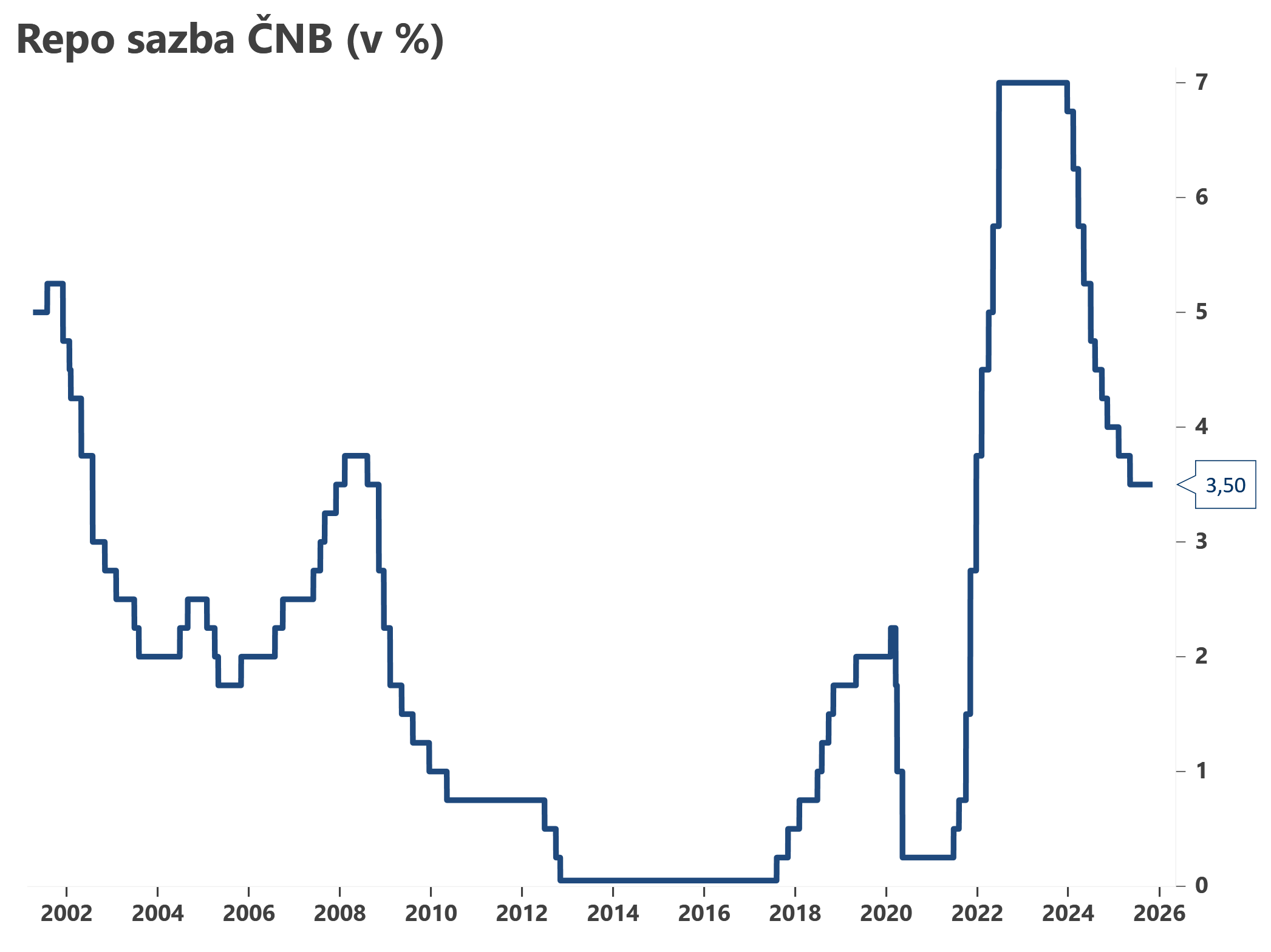 Česká centrální banka na svém dnešním zasedání ponechala úrokové sazby podle očekávání trhů beze změny na úrovni 3,50 %. -