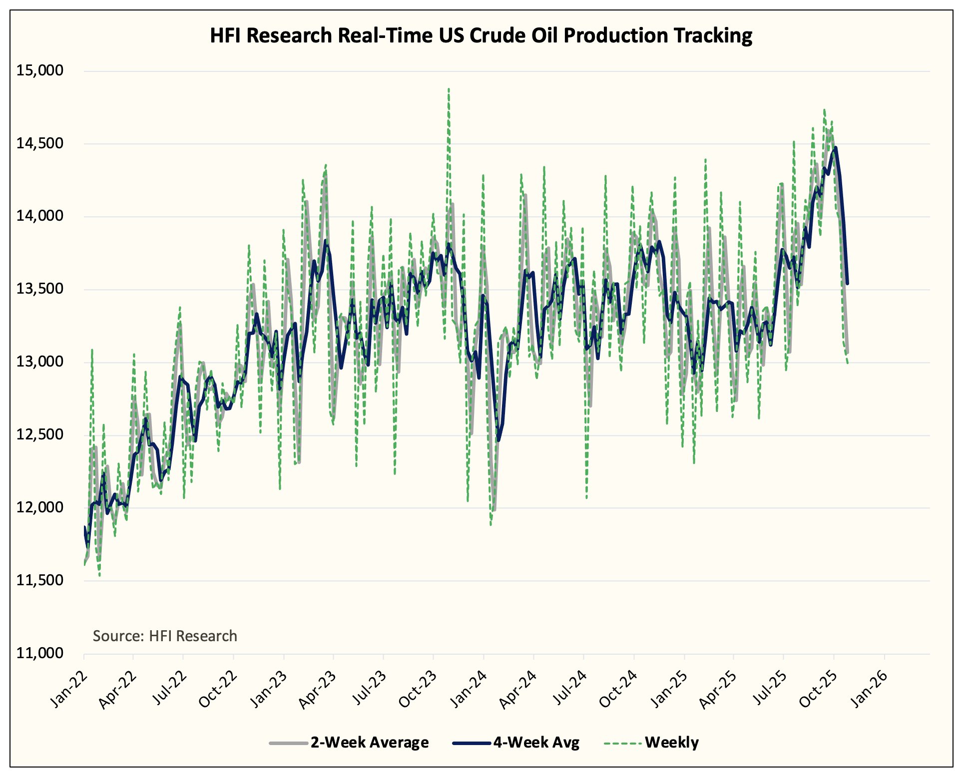 - Mezinárodní energetická agentura (IEA) nyní varuje před potenciálním rekordním přebytkem v roce 2026. Členové OPEC+ se minulý týden dohodli, že po prosincovém zvýšení pozastaví další zvyšování v 1. čtvrtletí 2026 v reakci na oslabení tržních podmínek. Saúdská Arábie sama zvýšila produkci v říjnu o 40 000 barelů denně a dosáhla průměru 10,02 milionu barelů denně.