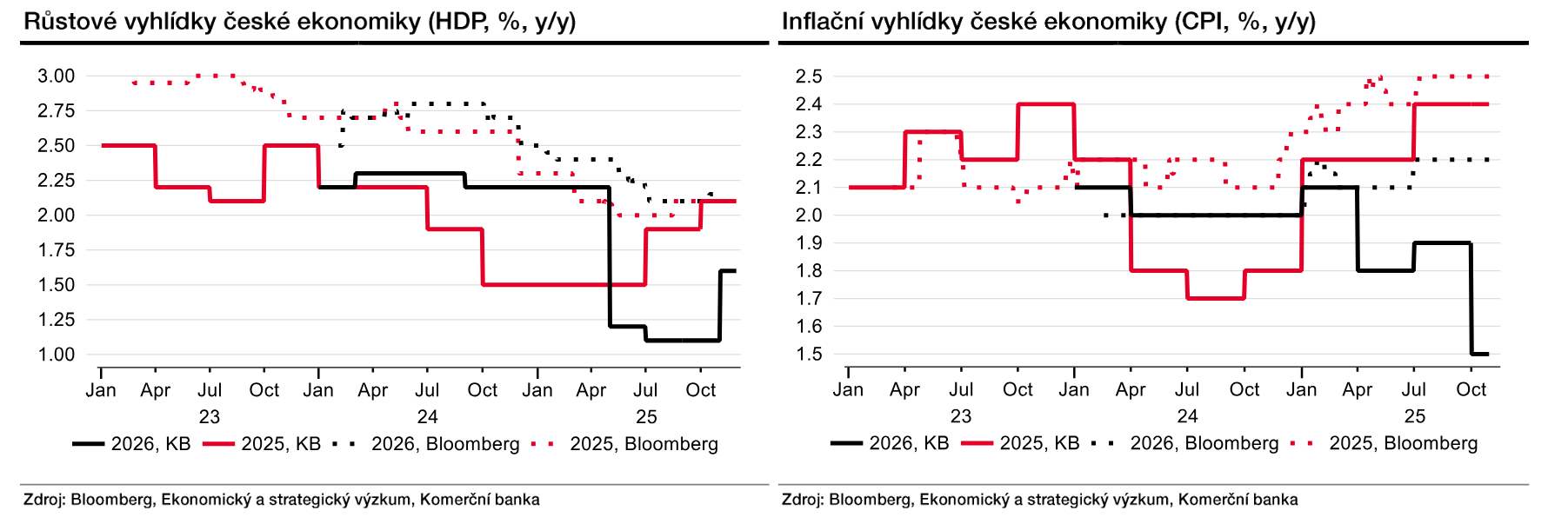 Přesto letošní rok uzavřeme s růstem HDP o 2,1 %, což bude sice nejlepší výsledek za poslední tři roky. Naše prognóza nicméně pro rok 2026 počítá se zpomalením na 1,6 %. Důvodem je právě aktuální ochlazení v závěru letošního roku, které se přelije i do celoroční statistiky v příštím roce.