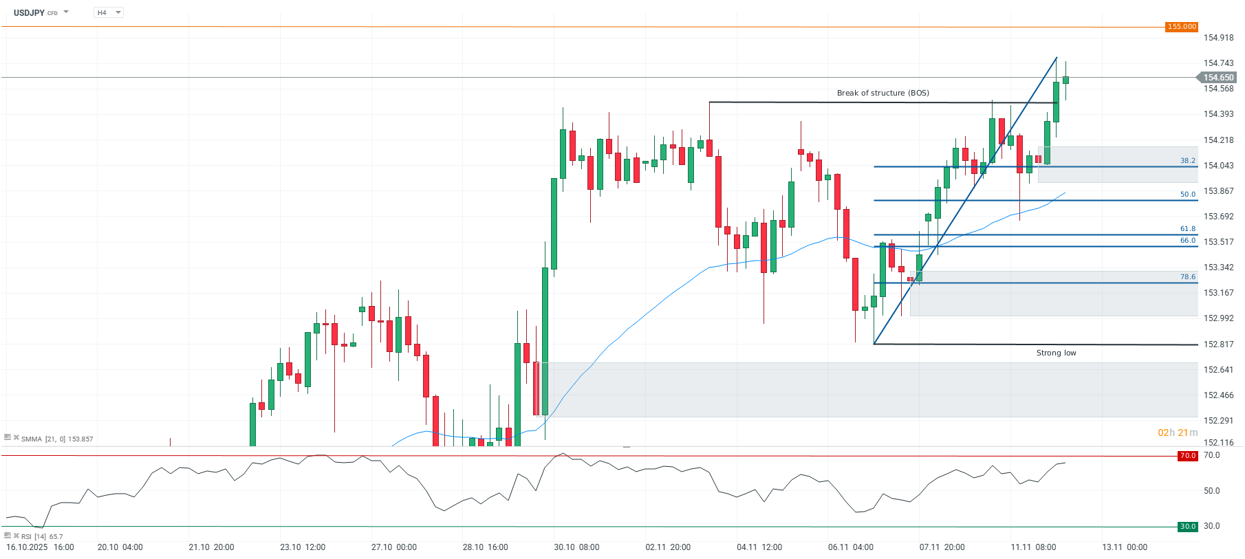 Trh zároveň vnímá, že BOJ zatím není připravena výrazně zpřísnit politiku, což dále oslabuje japonskou měnu. Pokud se kurz dostane blíže k hranici 155, může následovat série verbálních zásahů – případně i přímá intervence, podobně jako v červenci 2024, kdy úřady zasáhly při úrovni kolem 160 USD/JPY.