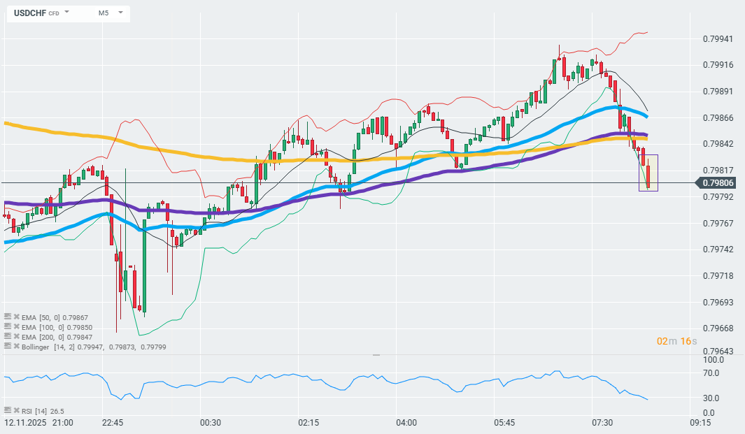 Údaje o výrobní inflaci ve Švýcarsku byly na meziměsíční bázi znatelně slabší, než se očekávalo. Ačkoli švýcarský frank na zveřejnění zpočátku příliš nereagoval, během poslední hodiny došlo k výraznému stažení páru USDCHF.
