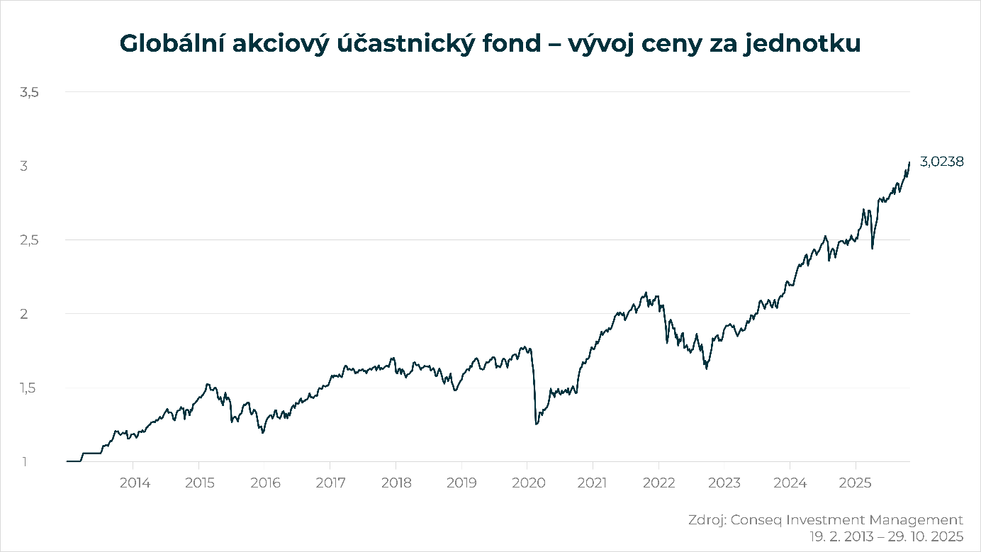 Globální akciový účastnický fond jako první na trhu pokořil hranici 3 Kč za jednotku
