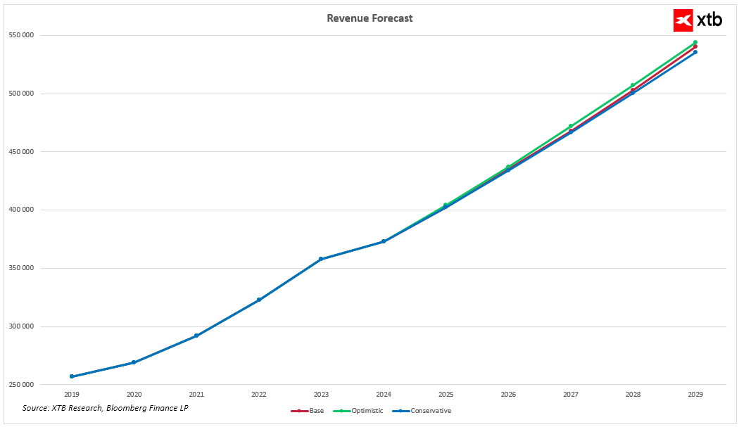 Analýza je založena na základním scénáři finančních prognóz, který předpokládá pokračující stabilní růst tržeb a obnovu provozních marží po dočasném poklesu ve třetím čtvrtletí 2025.