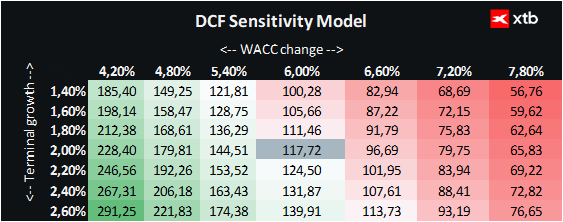 Terminální hodnota byla odhadnuta při konzervativní míře růstu 2 %. Ostatní finanční parametry byly průměrovány na základě výsledků za posledních pět let.