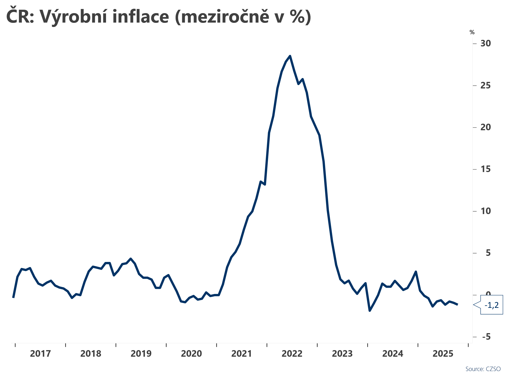 Výrobní ceny ukázaly na pozvolné inflační odeznívání