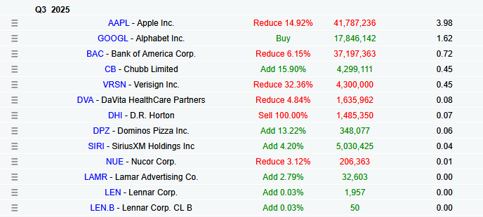 Přehled změn v akciovém portfoliu Berkshire Hathaway za 3Q 2025