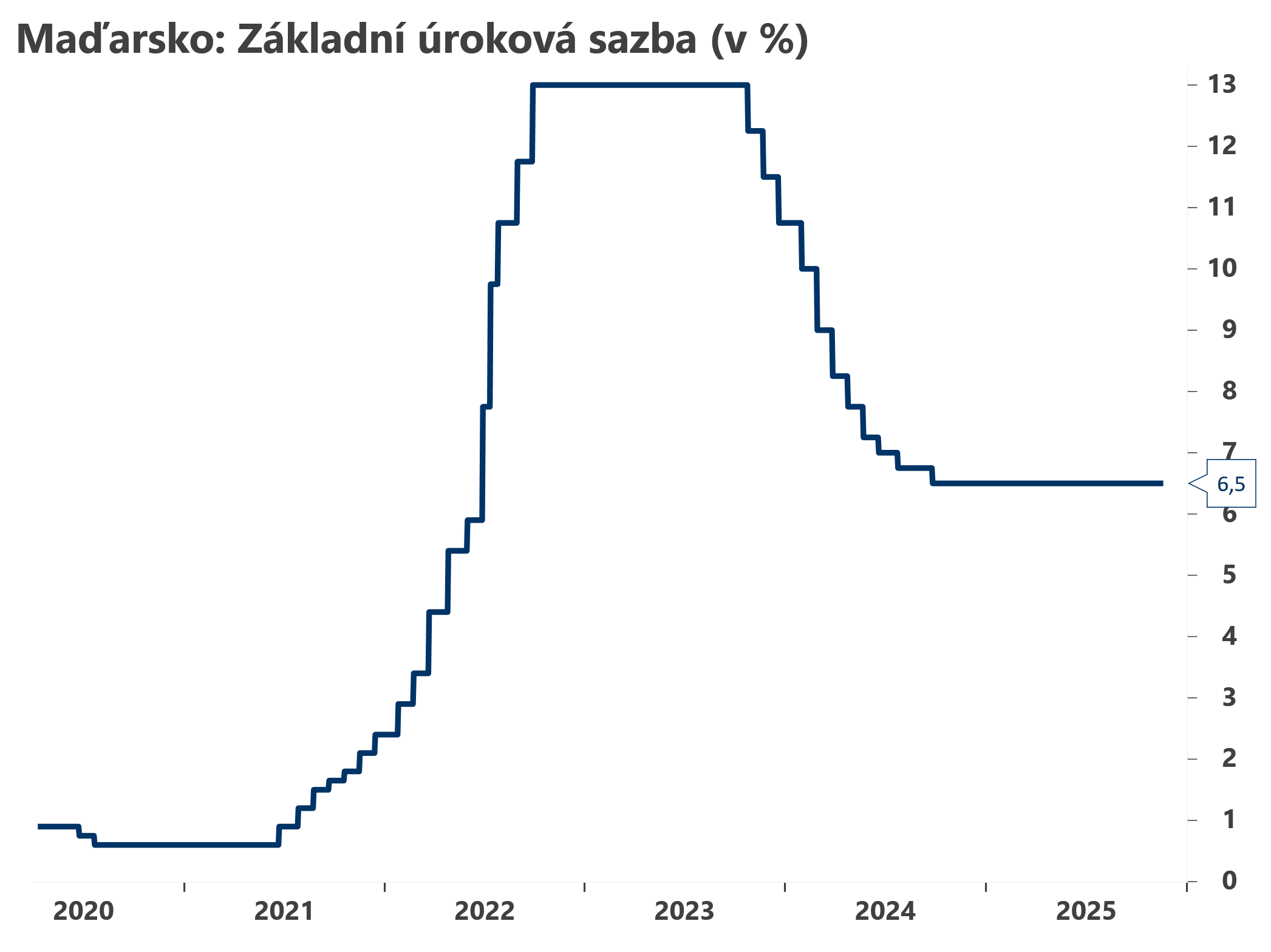 Maďarská centrální banka na svém dnešním zasedání ponechala úrokové sazby podle očekávání trhů na 6,50 %. -
