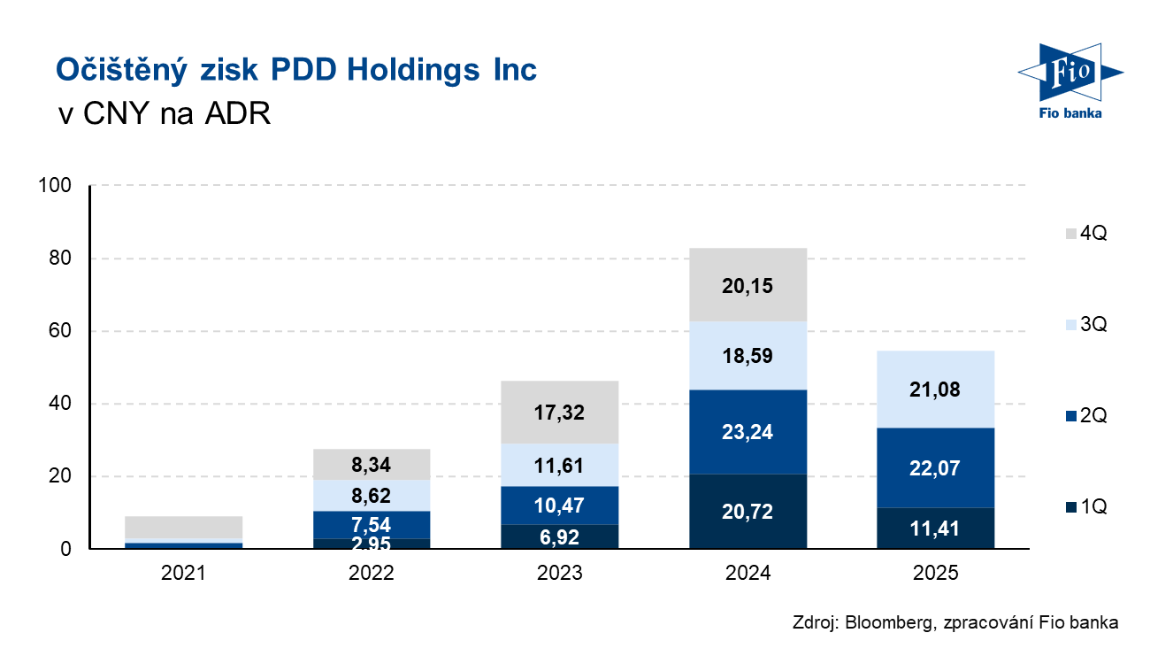 Klíčová slova: Finance | ADR | Akcie | Bloomberg | CEO | Certifikát | Dividendový výnos | Investice | P/E | Ukazatel | Výnos | Wall Street | USD | Zisk | Výsledky | EPS | Banka | Fio banka | Cena | Fio | Cílová cena | Tržby | Kapitalizace | Konsensus | Očekávání | CNY | Očekávání trhu | Čistý zisk | Nejistoty | Hospodaření | Výsledky hospodaření | Provozní zisk | Meziroční růst | Vývoj | Tržby společnosti | Zisk společnosti | Růst | E-commerce | Očištěný čistý zisk | Růst tržeb | Provozní zisk společnosti | PDD | Finanční výsledky | Cíle | Provozní náklady | Mateřská společnost | Společnosti | Společnost | Výsledky společnosti | TIM | 3М | CEO společnosti | Soustředění | Vice | Komentář vedení | PDD Holdings | Zhao | Fio banka, a.s. | Temu | Náklady | Dlouhodobé cíle | Online tržiště |