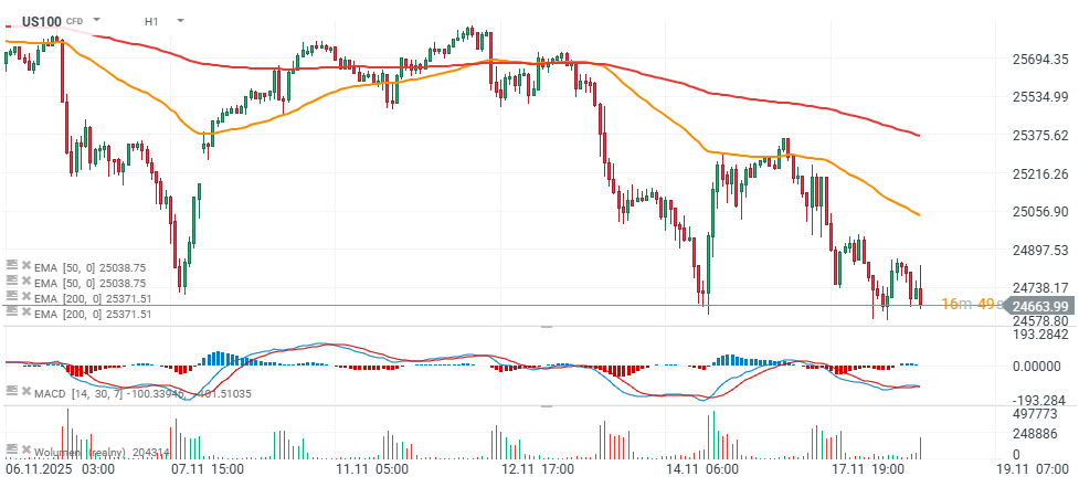Američané mohou oslavovat znovuotevření vlády, konec rozhodovací paralýzy a obnovení financování klíčových programů. Trhy však důvod k oslavám nevidí. Obchodování na Wall Street dnes začíná výrazným poklesem. Futures na US100 klesají o přibližně 1 %, S&P 500 a Russell ztrácejí zhruba 0,5 %. -