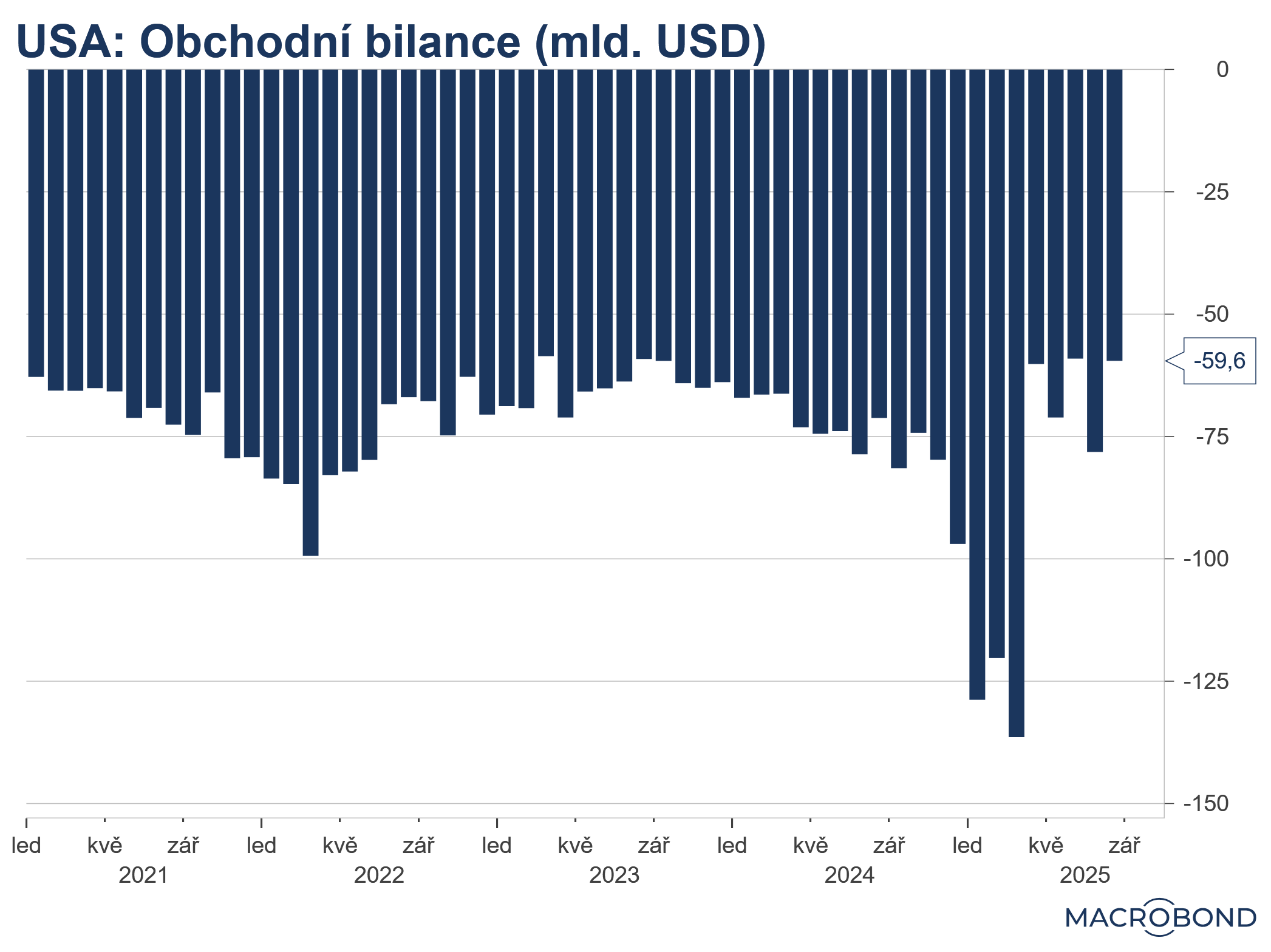 Obchodní bilance skončila v srpnu schodkem 59,6 mld. dolarů oproti revidovanému schodku 78,2 mld. USD v červenci. Trhy očekávaly schodek 60,4 mld. USD.