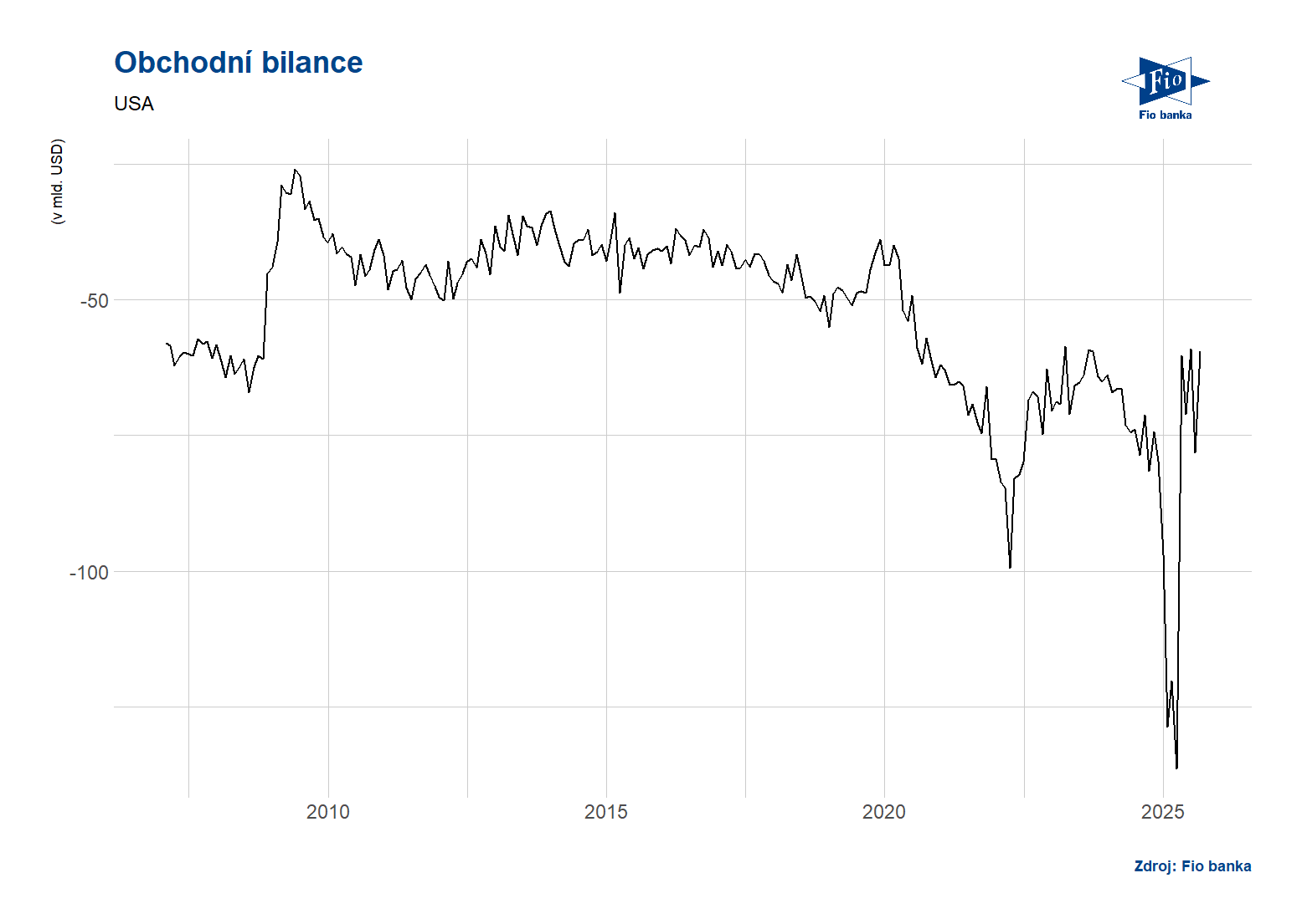 Klíčová slova: USA | Bloomberg | Obchodní bilance | USD | Banka | Fio banka | Fio | Očekávání | Očekávání trhu | Bilance | 3М | Jakub Němec | Fio banka, a.s. |