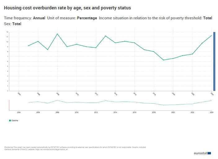 Po roce 2022 se v Česku historicky mimořádně rychle zhoršuje dostupnost bydlení pro mladé lidi, s tím padá i porodnost. Předtím se po roce 2013 dostupnost bydlení převážně zlepšovala, vyplývá z nových dat Eurostatu
