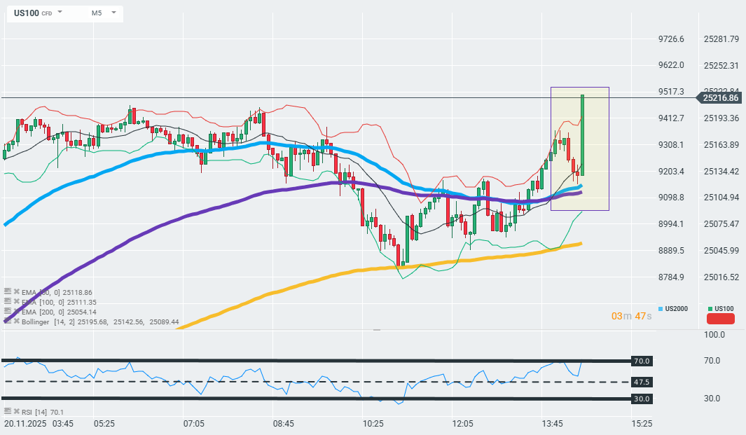 BREAKING: US100 roste o 1,5 % díky silnému oživení technologických akcií 📈