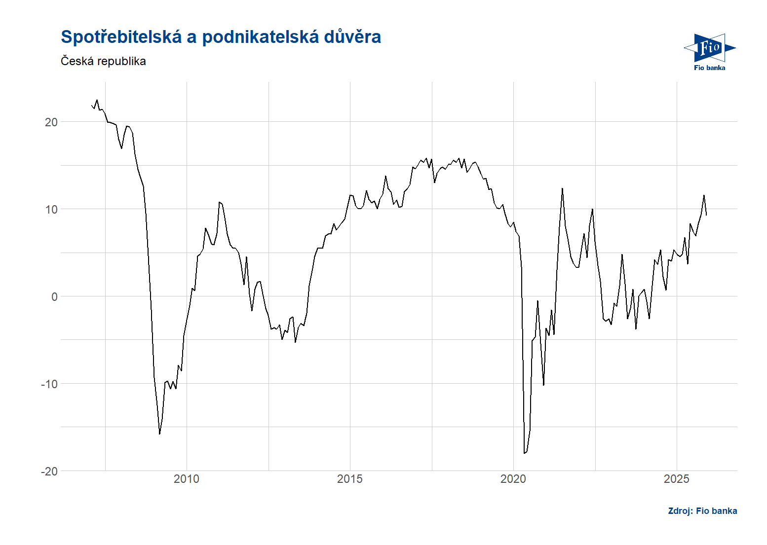 Klíčová slova: Bloomberg | Index | Banka | Fio banka | Fio | Podnikatelská důvěra | Očekávání | Index spotřebitelské důvěry | Očekávání trhu | ČSÚ | Stavebnictví | Situace | Zlepšení | Domácnosti | Růst | ČR | Důvěra | Růst důvěry | Vice | Fio banka, a.s. | Michal Šnobl | Dlouhodobý průměr |