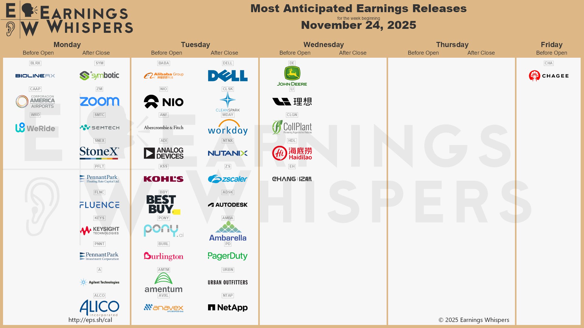 Firemní výsledky pro tento týden: VIG, NVIDIA, Alibaba, Crowdstrike, Dell, Autodesk,..