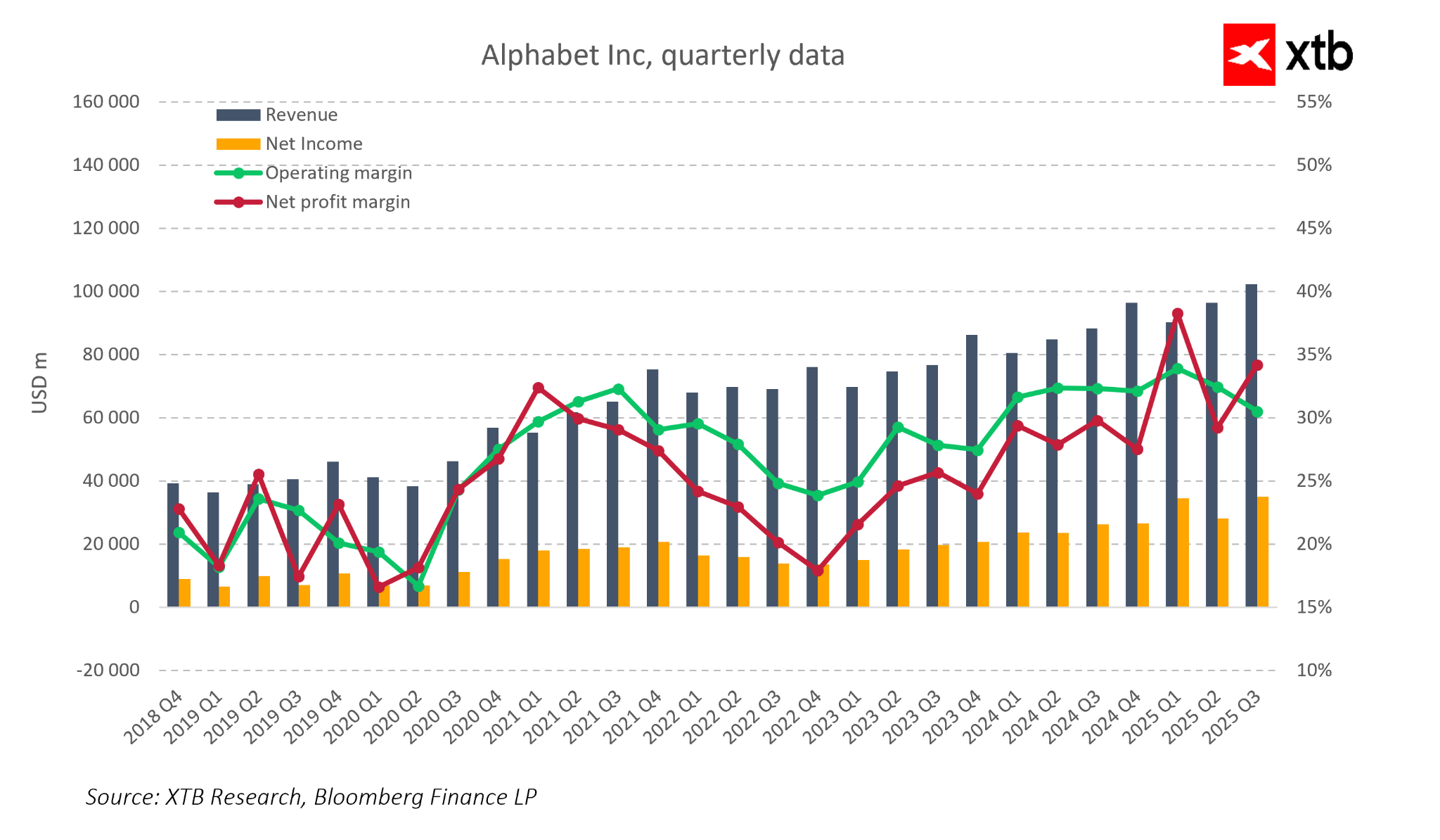 Uvedení nejnovějšího modelu umělé inteligence od Googlu, Gemini 3, bylo přijato velmi pozitivně, což se odrazilo v růstu ceny akcií společnosti Alphabet v den vydání. Model vyniká schopností poskytovat komplexnější a přesnější odpovědi s menším počtem dotazů od uživatele, čímž významně zvyšuje efektivitu interakcí s AI systémem. Gemini 3 je vysoce škálovatelný a přímo se integruje se službami Googlu, včetně Vyhledávání, a může potenciálně oslovit stovky milionů uživatelů měsíčně. Takto široká distribuce poskytuje Alphabetu skutečnou výhodu v oblasti sběru dat a optimalizace AI modelů, zatímco rychlé zavádění nových funkcí napříč celým ekosystémem společnosti posiluje její konkurenceschopnost v sektoru umělé inteligence.