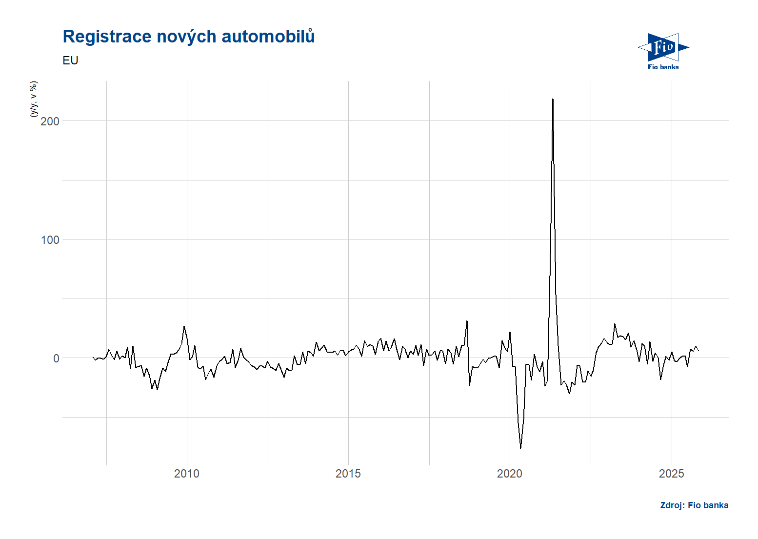 Registrace nových aut (EU27) (leden): aktuální hodnota: -2,6 %. -
