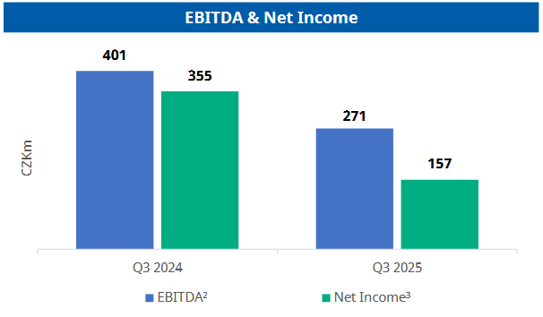 Volné peněžní toky činily -751 mil. Kč za 9M 2025.