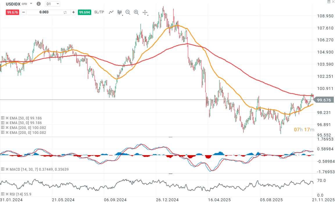 Poslední den tohoto týdne indexy akciových trhů pokračují v růstu a v době zveřejnění posílily o 0,15-0,30 %. Pozorujeme mírné oživení výnosů amerických dluhopisů po nedávných poklesech. Dolar však nesleduje jasný směr a zůstává kolem úvodních úrovní. -