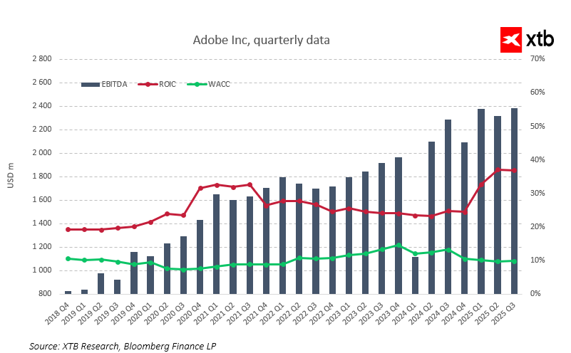Adobe vstupuje do nadcházejících let se silnou tržní pozicí a stabilním podnikatelským modelem založeným na předplatném, který doplňují rychle rostoucí řešení v oblasti AI.