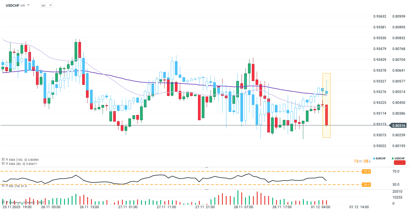 Reálné maloobchodní tržby ve Švýcarsku vzrostly více, než se očekávalo, a předchozí údaj byl revidován směrem nahoru z 1,5 % na 1,8 %. Toto stabilní oživení tržeb po propadu na konci léta a na začátku podzimu pomáhá zmírnit obavy z hospodářského poklesu způsobeného cly.