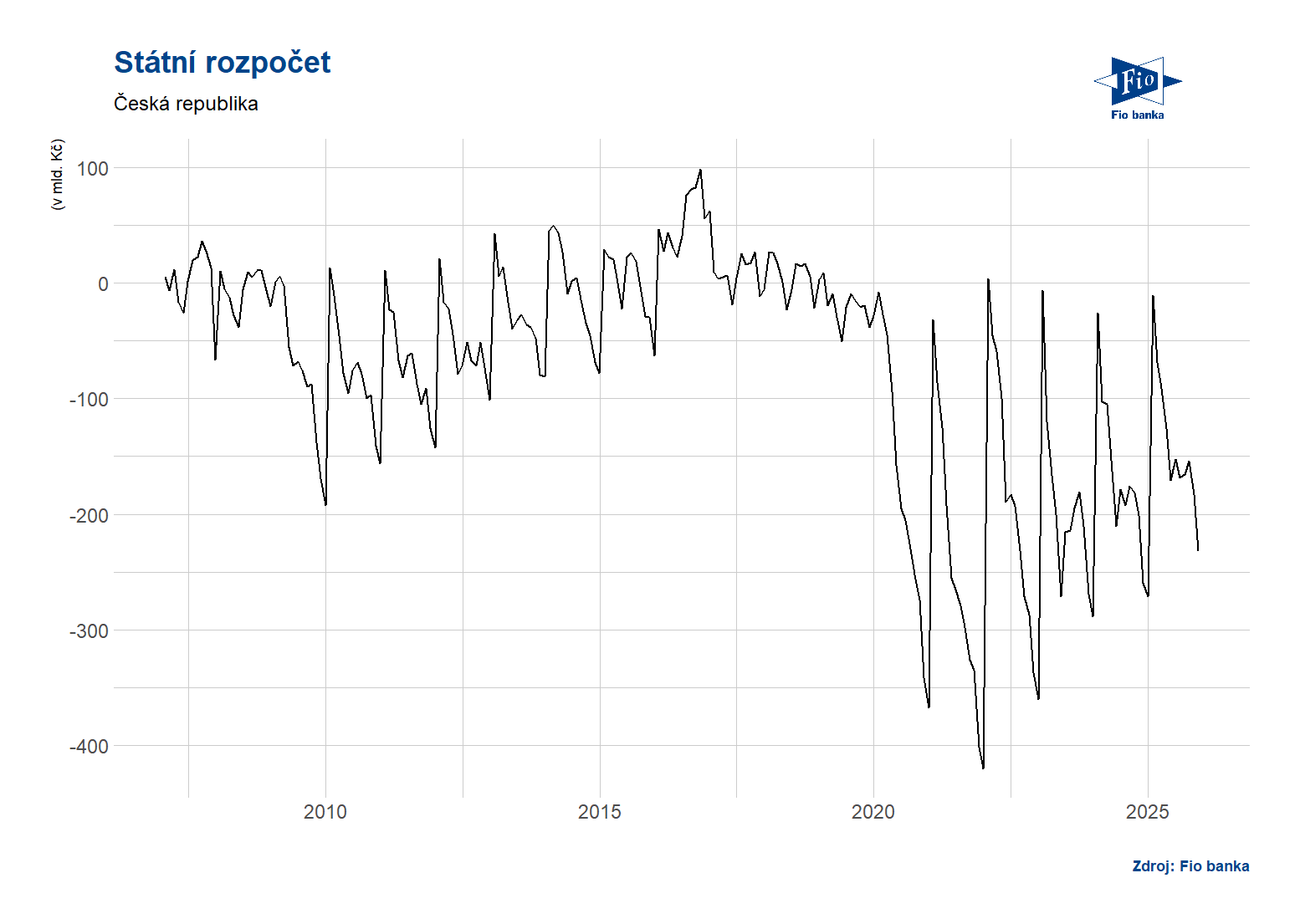 Bilance státního rozpočtu (leden): aktuální hodnota: -11,2 mld. Kč. -