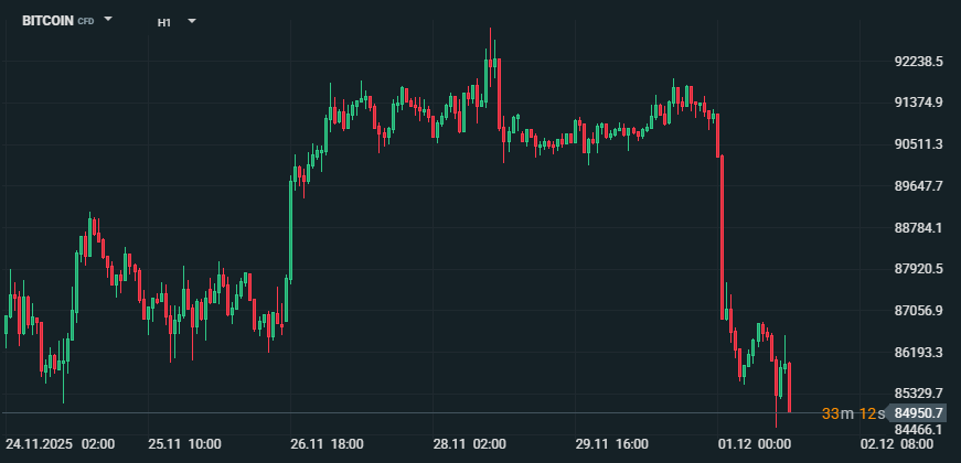 Bitcoin se propadl pod 86 000 USD: Trh kryptoměn zahájil prosinec silným výprodejem