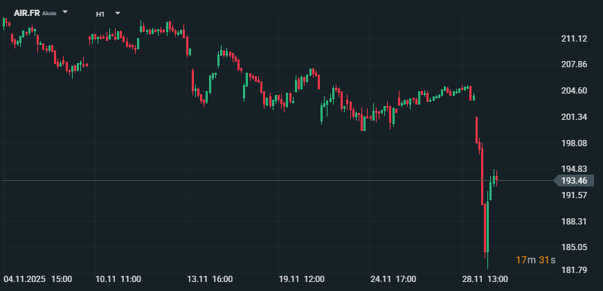 Po zveřejnění informací akcie Airbusu zaznamenaly největší denní pokles za poslední rok - 10% propad. Investoři se obávají dopadu na plánované dodávky, nákladů na opravy a možné ztráty důvěry u zákazníků. Zdroj: xStation5