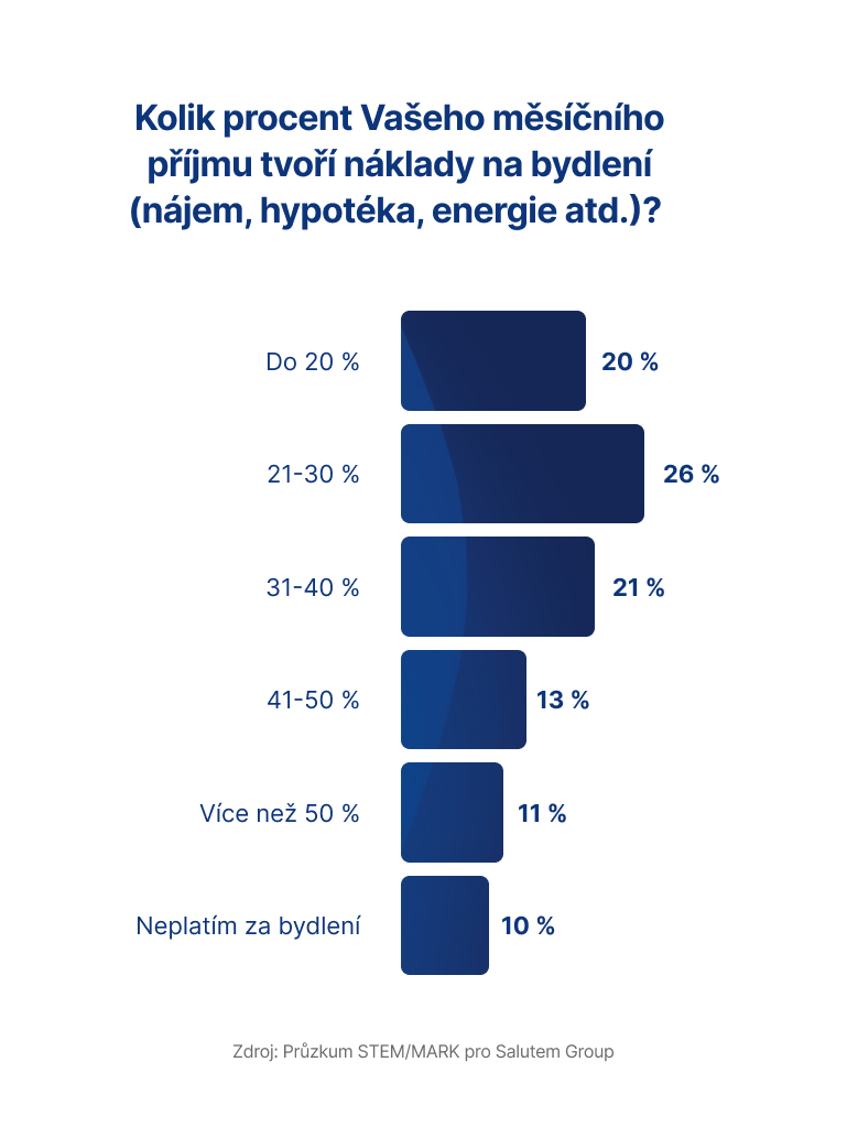 ● 45 % Čechů dává na bydlení více než 30 % svých příjmů