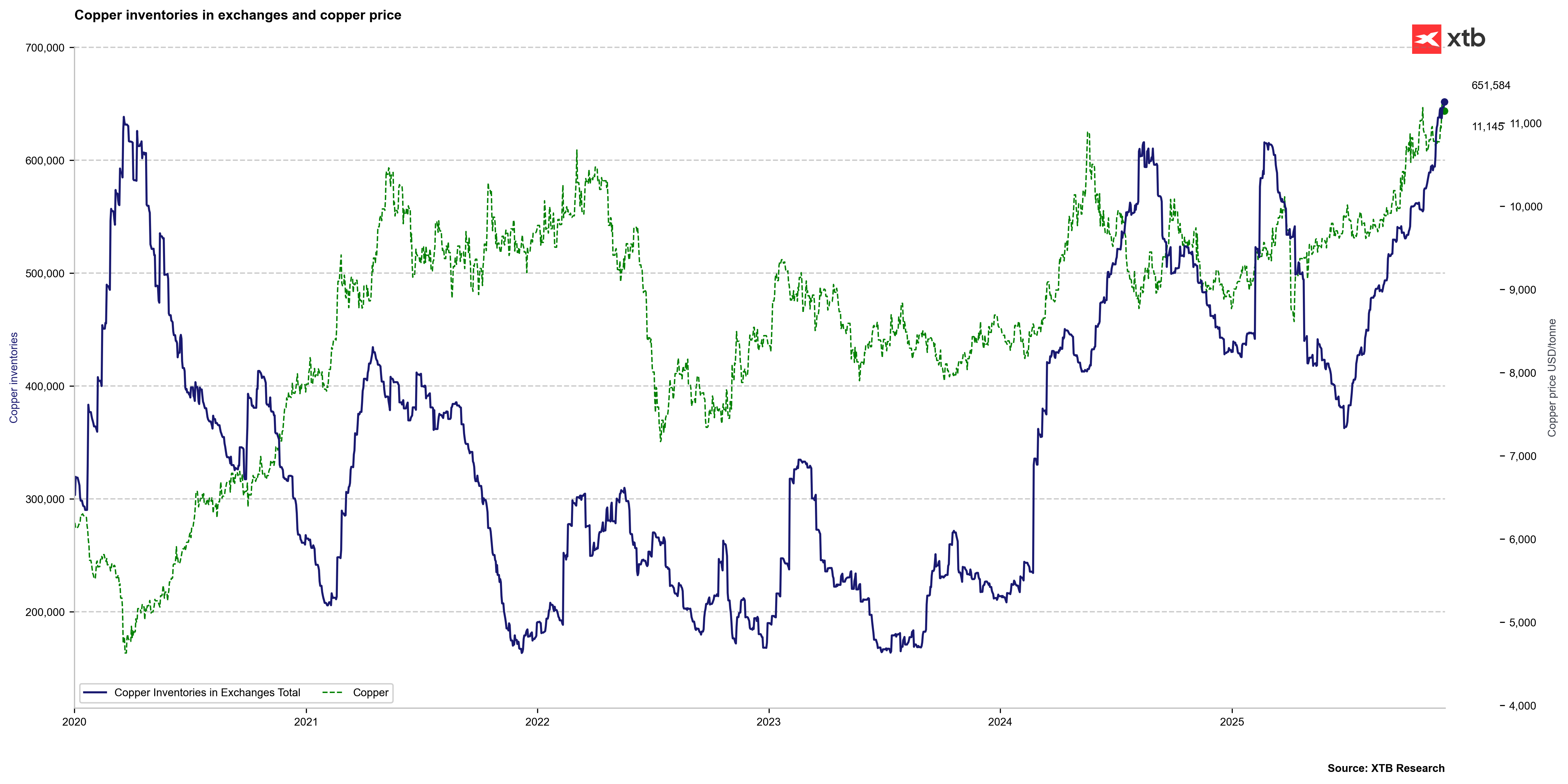 Na nedávno ukončené konferenci Asia Copper Week analytici jednoznačně upozornili na hrozící nedostatek mědi. Čínské rafinerie snižují produkci a série nehod v dolech v posledních měsících výrazně omezila nabídku této suroviny. Výrobci a dovozci ve velkém hromadí zásoby kovu, protože se připravují na dlouhodobé problémy s dostupností a očekávaný nárůst poptávky – ta je tažena výstavbou datových center a energetické infrastruktury. Měď se tak nachází v silném a dlouhodobém růstovém trendu.