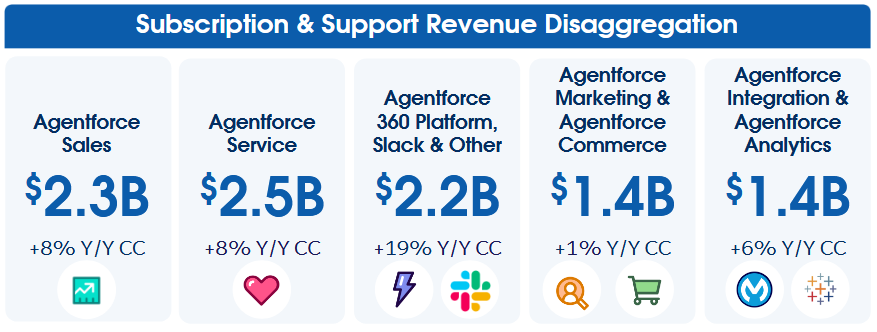 Ročně opakující se výnosy (ARR) z Agentforce a Data 360 zaznamenaly meziroční růst o 114 % na 1,4 mld. USD.