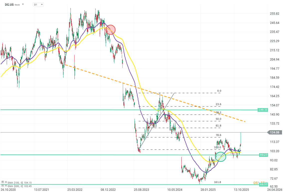 Investoři v této nenápadné společnosti se nacházejí na prahu euforie. Firma představila velmi silné výsledky a ještě lepší výhledy, a to navzdory obavám trhu o stav amerického spotřebitele. Obavy ze situace na trhu práce a z možné recese mohou ale začít hrát ve prospěch firem, jako je právě Dollar General. Tento řetězec totiž působí v nízkonákladovém segmentu. V obdobích slabší ekonomické aktivity neztrácí zákazníky ani tržby – protože jeho zákazníci nemají kam „snižovat“ spotřebu – a naopak získává nové zákazníky, kteří by za lepších časů nakupovali v dražších obchodech nebo chodili do restaurací.
