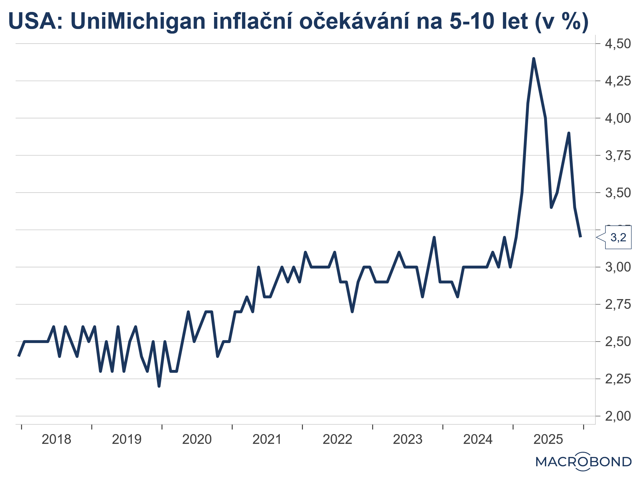Inflační očekávání podle UniMichigan na 5-10 let kleslo
