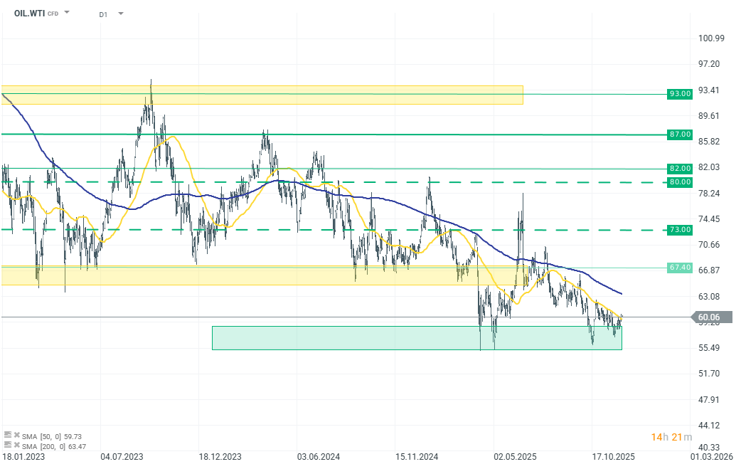 Ceny ropy WTI se stabilizovaly kolem 60–61 USD za barel. Trh se snaží vyvážit obnovené nákupy zlevněné ruské ropy Indií s obavami z globálního přebytku nabídky. Indie opět nakupuje ropu prostřednictvím zprostředkovatelů s větší slevou kolem 5 USD za barel a prezident Putin slíbil „nepřerušené dodávky paliva“ v rámci rozšířené hospodářské spolupráce. Obnovené obchodní partnerství mezi Indií a Ruskem zajišťuje stabilní poptávku po ruské ropě v době, kdy OPEC+ a producenti mimo kartel – jako USA, Brazílie a Guyana – zvyšují produkci.