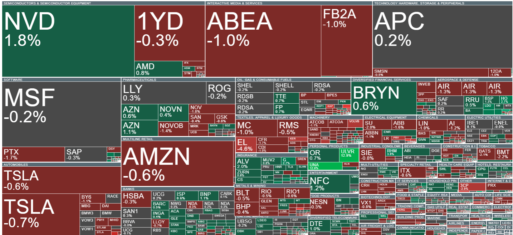 Evropské indexy pokračují v poklesech z posledních dní. Hodnoty indexů jsou pod tlakem evropského obranného sektoru a amerického technologického sektoru, který od začátku týdne prochází výraznou korekcí. -