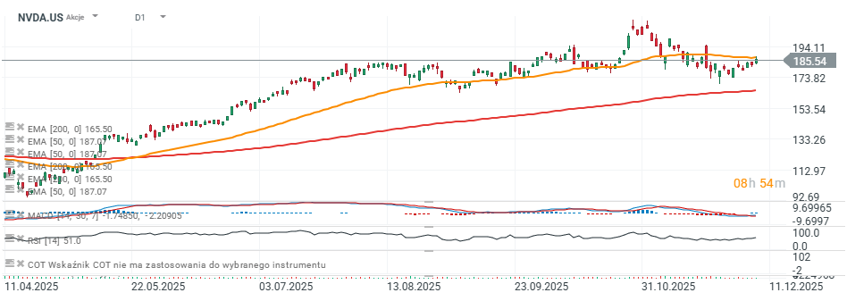 Akcie společnosti Nvidia se nacházejí v klíčovém okamžiku, protože ve středu po uzavření trhu firma zveřejnila své čtvrtletní výsledky. Očekávání investorů zvyšuje pravděpodobnost výraznější volatility. Titul se aktuálně pohybuje těsně pod důležitou rezistencí na 182,00 a má prostor znovu otestovat své rekordní maximum na 183,40. -