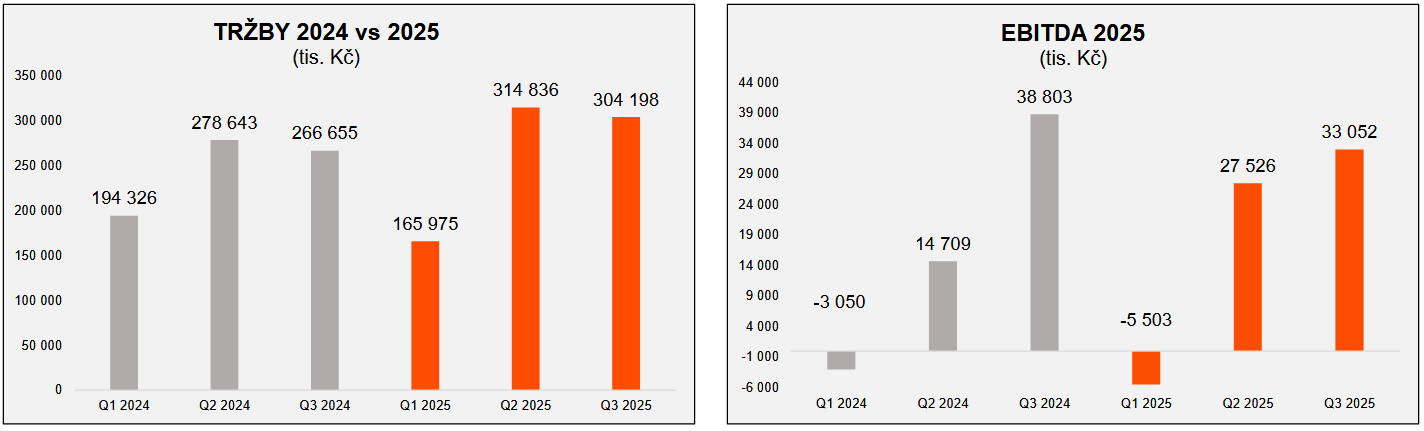 Tržby ve třetím kvartále zaznamenaly meziroční růst o 14 % na 304,20 mil. Kč. Za prvních devět měsíců roku vzrostly o 6 %. Přes pozitivní vývoj v posledních měsících zůstává vývoj v sektoru nadále turbulentní, což se odráží na nerovnoměrném vytížení výroby.