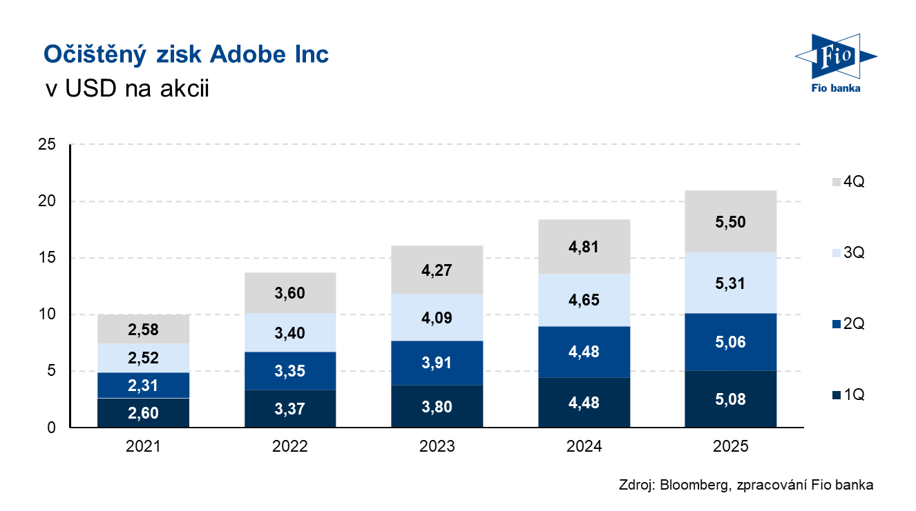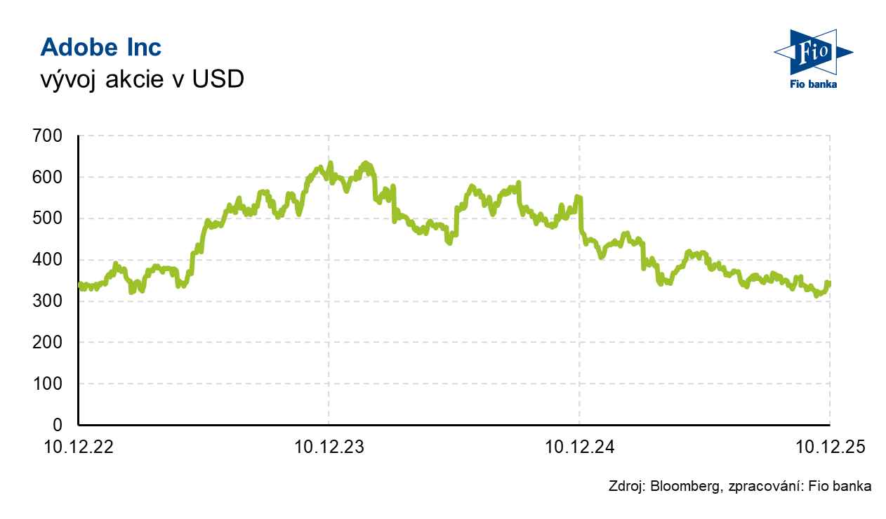 Klíčová slova: Akcie | Bloomberg | Cash flow | Dividendový výnos | P/E | Ukazatel | Výnos | Zisk na akcii | USD | Obchodování | Zisk | Zkušenosti | Výsledky | EPS | Banka | Fio banka | Cena | Fio | Fiskální rok | Trh | Cílová cena | ROCE | Kapitalizace | Výhled | Konsensus | Výnosy | Očekávání analytiků | Očekávání | Čistý zisk | Generální ředitel | Hospodaření | Výsledky hospodaření | Pokles | Provozní zisk | Meziroční růst | Výdaje | Vývoj | Růst | ADBE | Akcie Adobe | Adobe (ADBE) | Softwarová společnost | Americká softwarová společnost | AI | Společnosti | Společnost | Výsledky společnosti | TIM | 3М | Akcie Adobe Inc | Shantanu Narayen | Společnost Adobe | Jakub Němec | Vice | Komentář vedení | Nadšení | Platformy | Očištěný zisk na akcii | Adaptace | Výzkum a vývoj | Fio banka, a.s. | Rok 2025 | Ředitel společnosti | Rekordní výsledky |