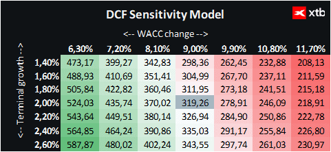 Ocenění je založeno na výchozím scénáři tržeb a finančním výhledu, s použitím váženého průměrného nákladu kapitálu (WACC) ve výši 9 % a konzervativní dlouhodobé míry růstu 2 %. Finanční parametry vycházejí z průměrných dat za poslední roky, což poskytuje realistický pohled na situaci společnosti.